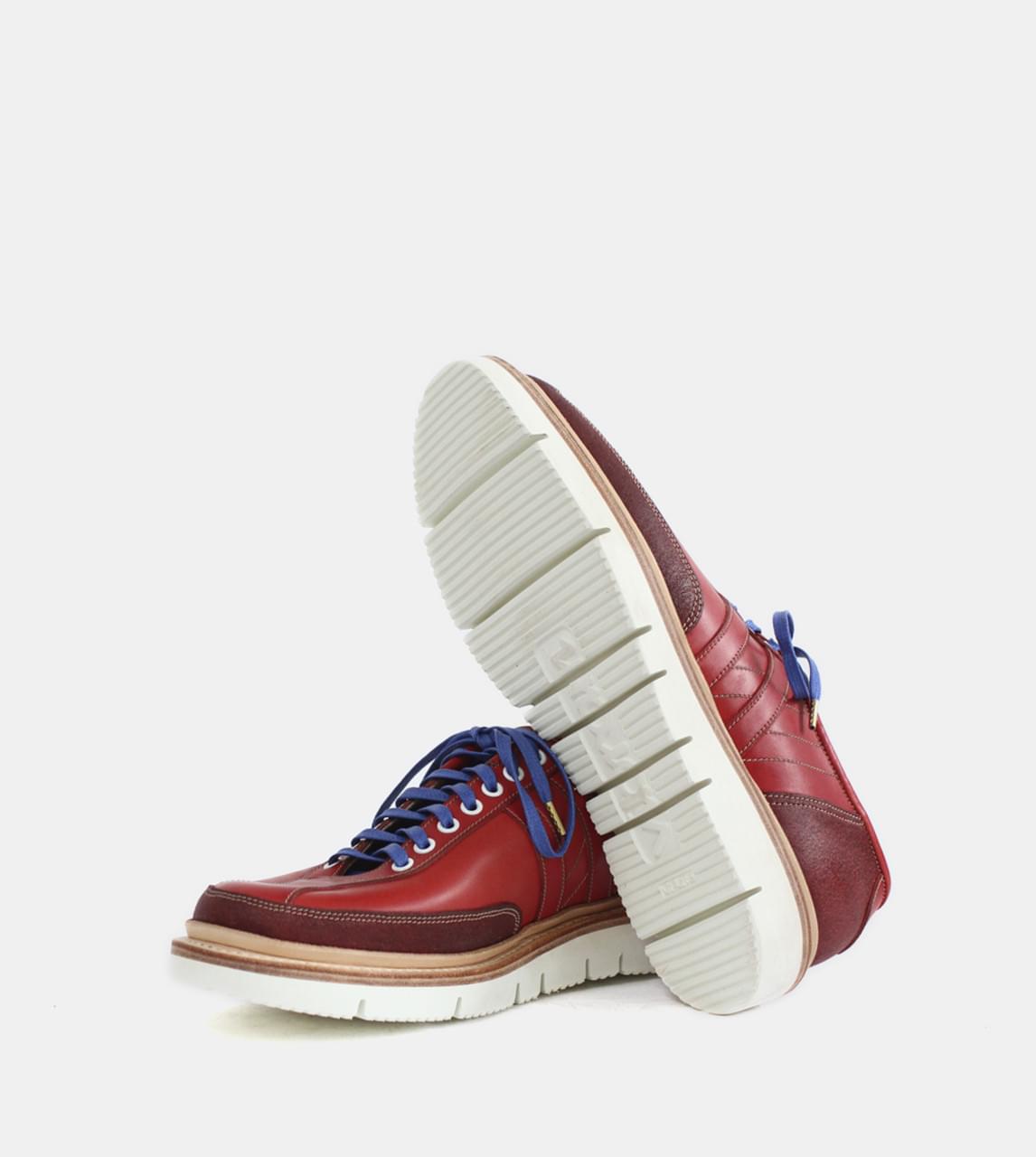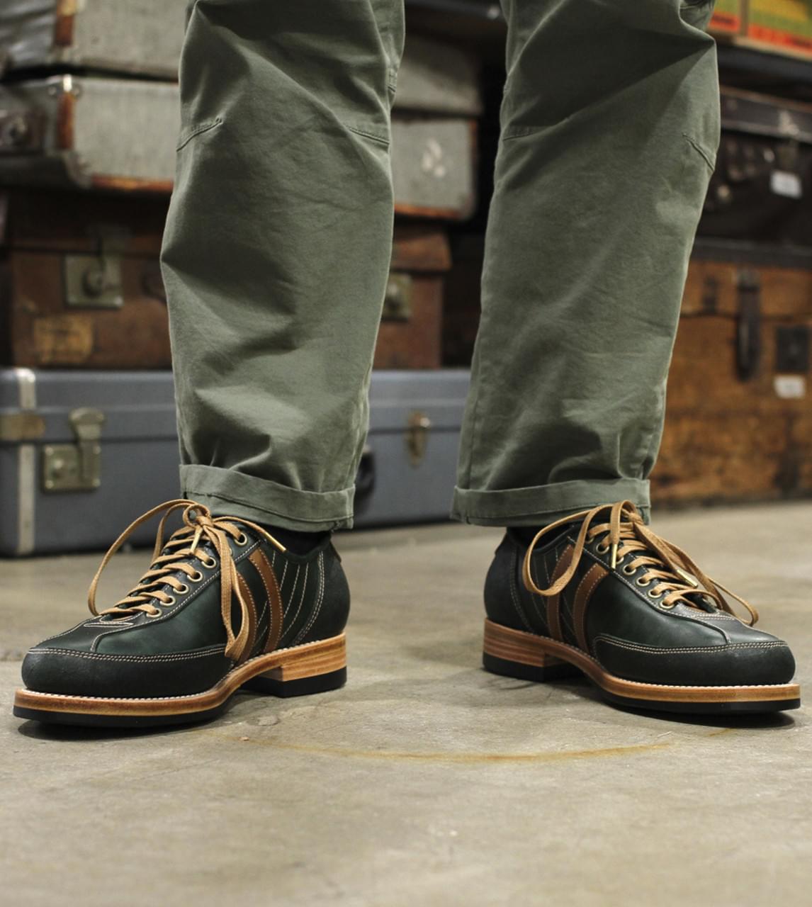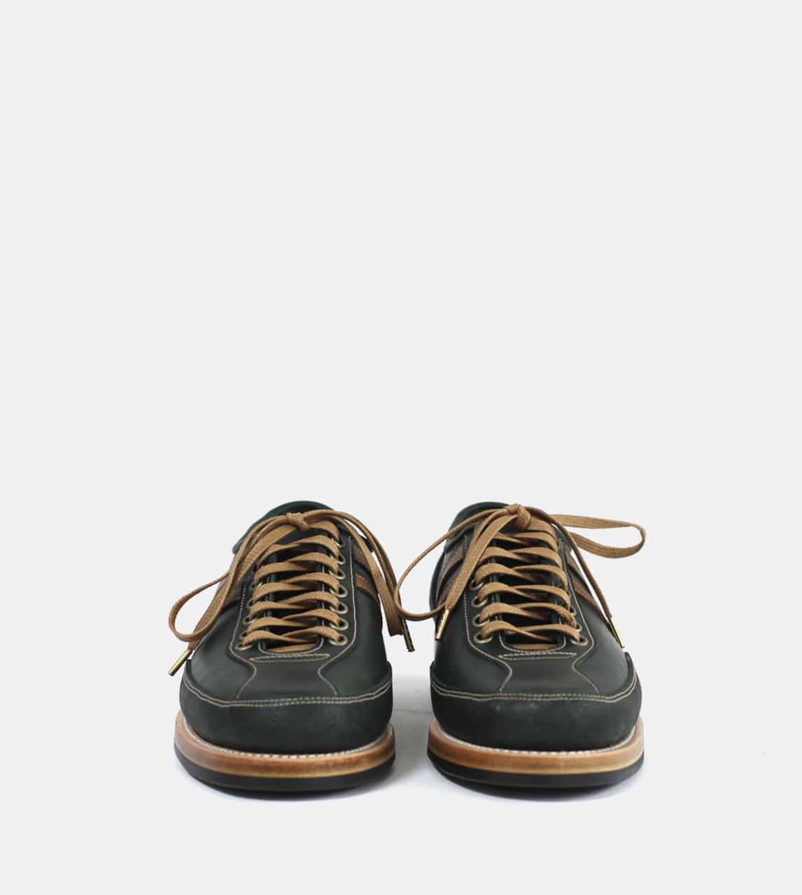Upper Locally tanned bovine upper with sealed mudguard and heel cup and contrasting stitching. The stripes and stitching of the "W" (the dubs) on the sides creates reinforcing. The sneaker is unlined so it can be worn in winter with a sock or summer without. The stiffner used in the heel is 3mm veg-tan leather and hand-lasted, just like we make our boots.