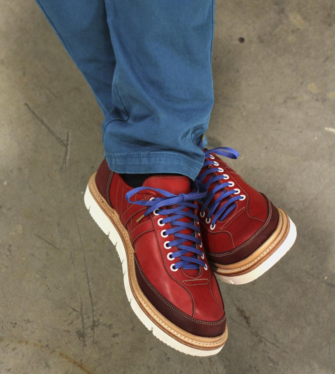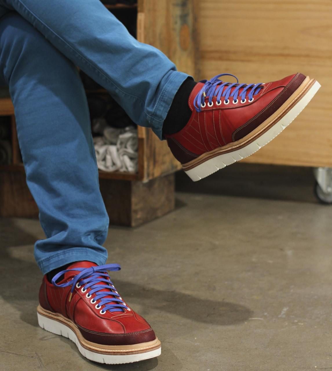 Sole: Mechanically fastened insole via a Blake stitched midsole. Then choose between a cemented Vibram Gloxi-Cut sole, a cork wedge or leather wedge with Topy Sevilla soles. Or go for a sneaker made like our boots and choose the McKay Welted sole and heel with either a Starr or Dr Sole full rubber sole. The Gloxi-Cut and Cork Wedge soles are the lighest of the sole options.