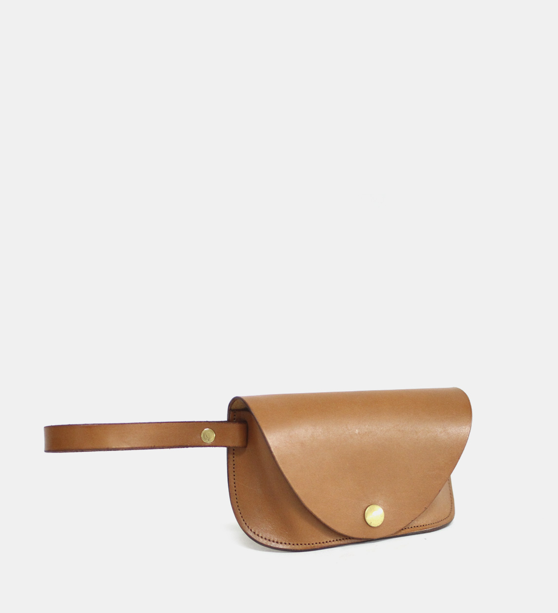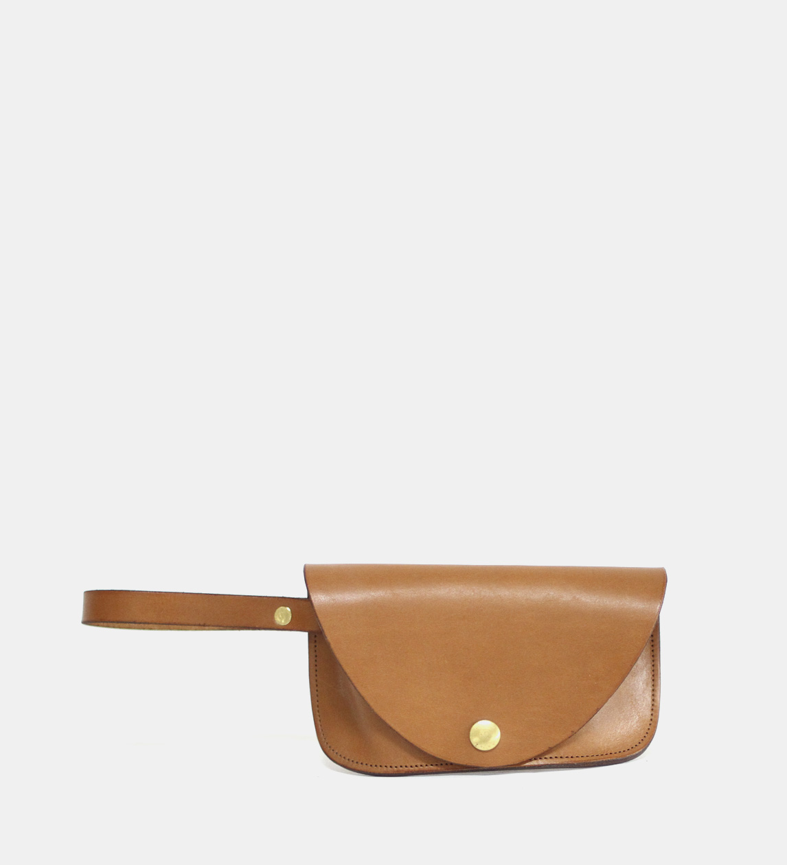 Minimal hardware for sleek simplicity. Uses a brass press stud for closure.