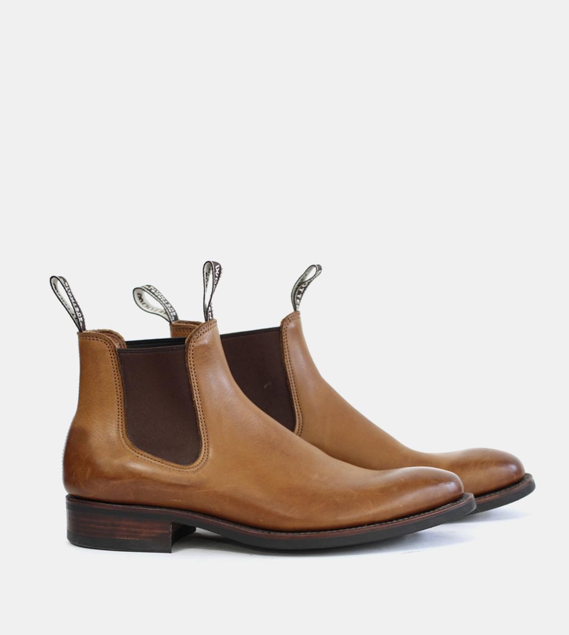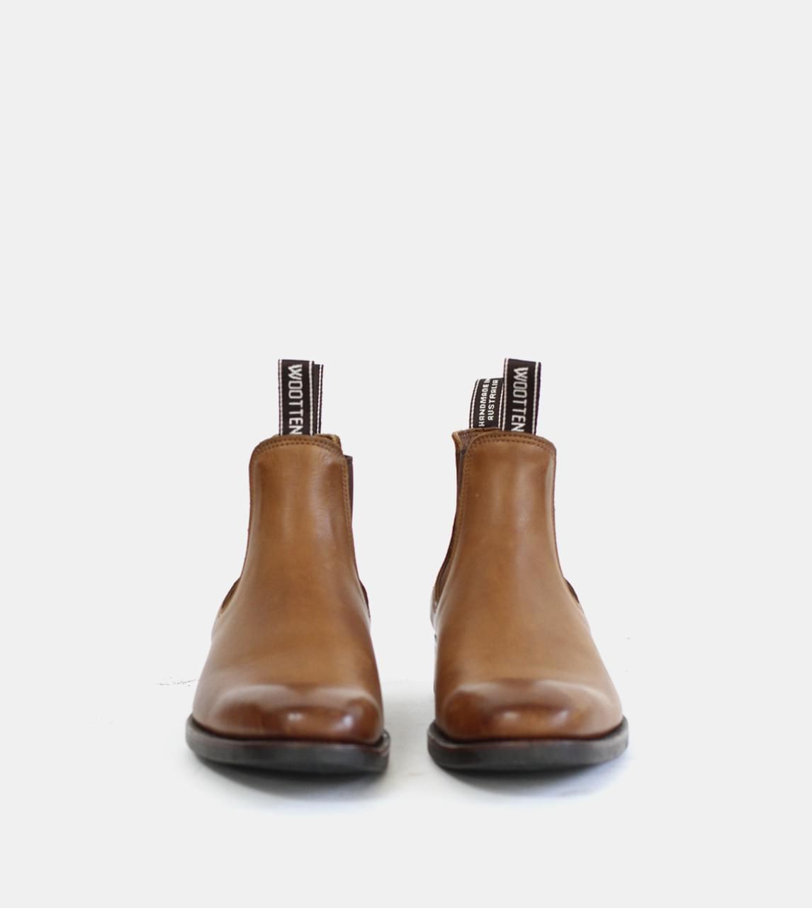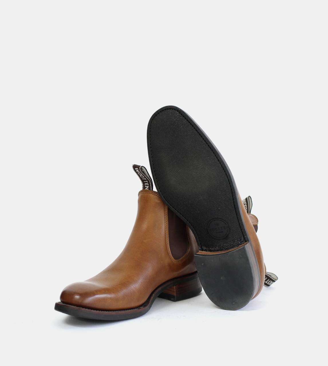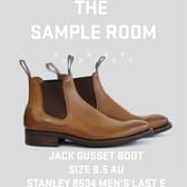 This sample product is for a Jack Gusset Boot Original in a size 8.5 AU. It was made on the Stanley 8534 E fitting last. It uses local saddle tan leather upper and has a Mckay welted Starr rubber black outsole with a brown wax edge. RRP $775. Made in 2024. This was the original sample of the Jack Gusset Original that we made.