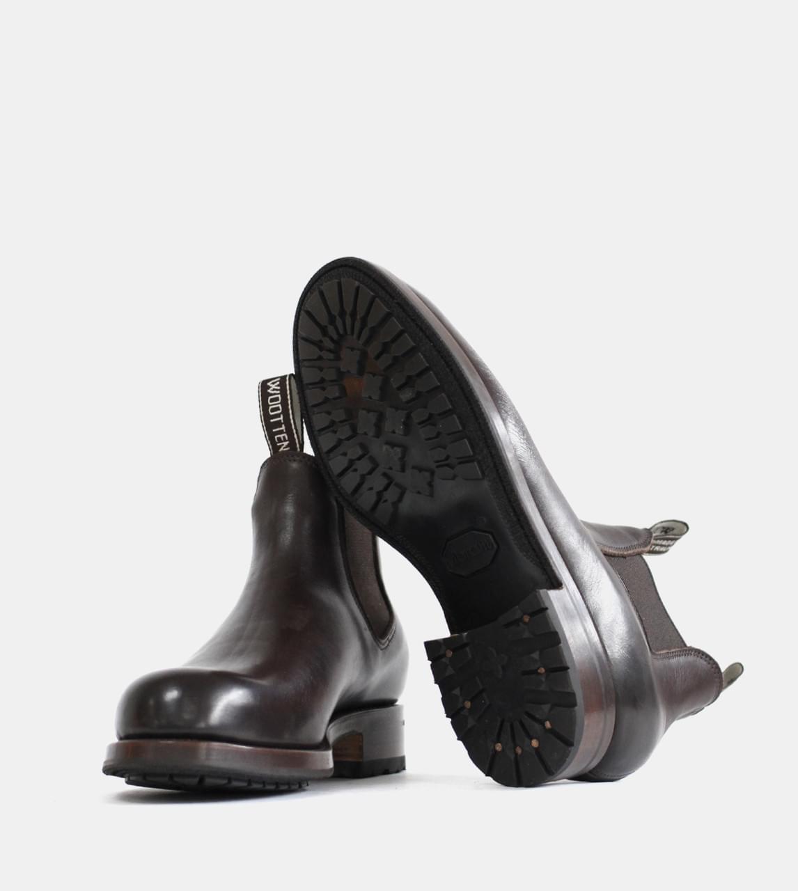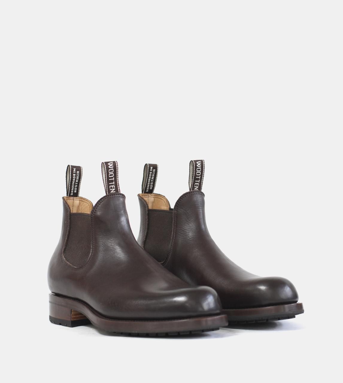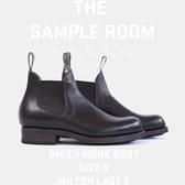 This sample product is for a Smith Work Boot Heritage in a size 9 AU. It was made on the Milton E fitting last. It uses local bovine cocoa leather as its upper, has a matching stitch, dark brown elastic and has a Mckay welted Vibram Tuscany black outsole with a brown wax edge. RRP $1080. Made in April 2026.